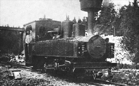 ![]() Järnvägen till Skottvångs gruva med lokförare Kämpe. Järnvägen revs 1946. Foto Carl A. Ericson (1920-talet). |